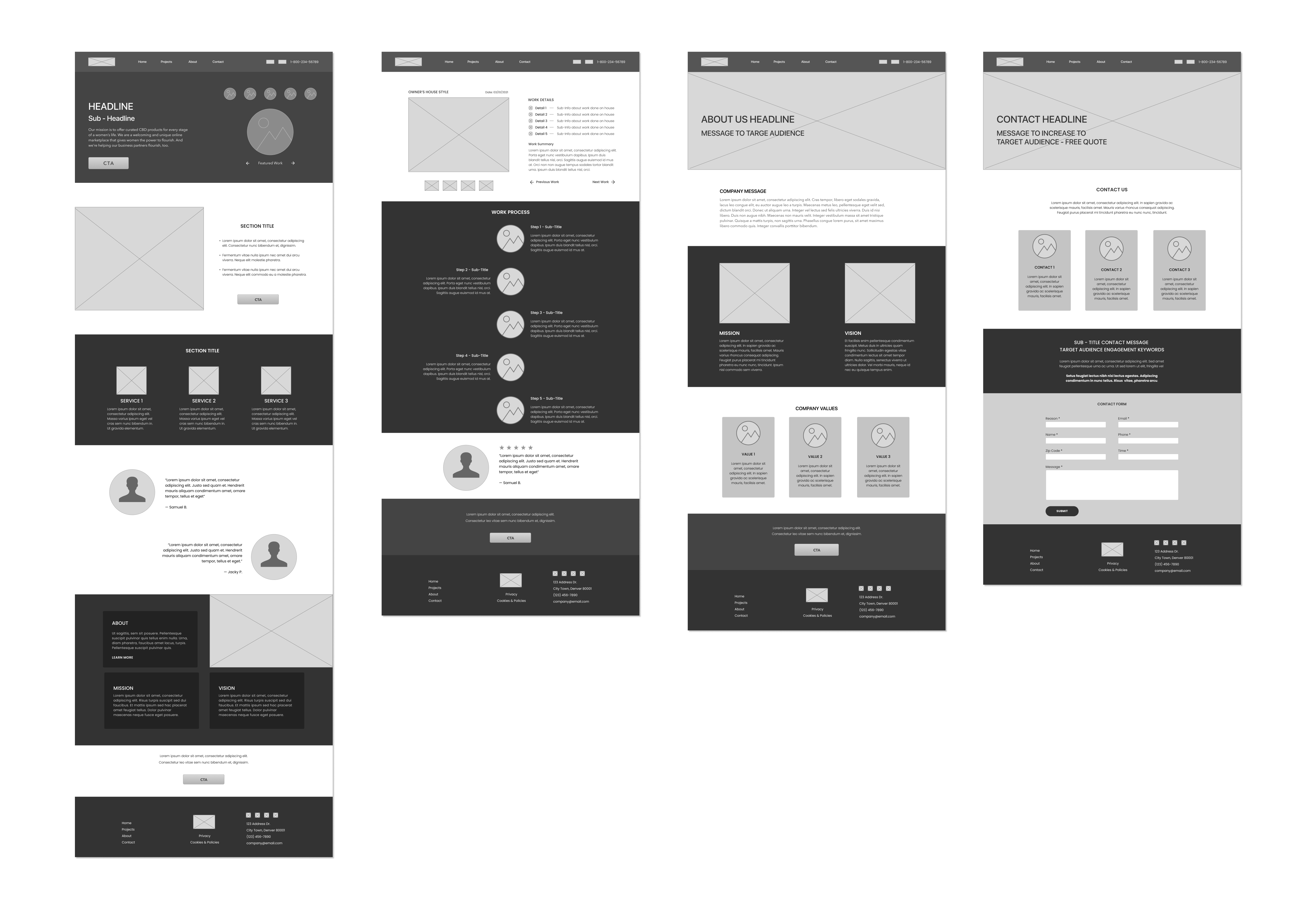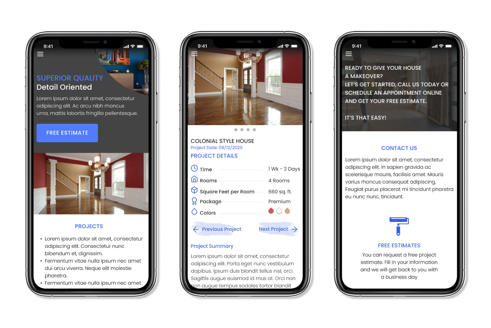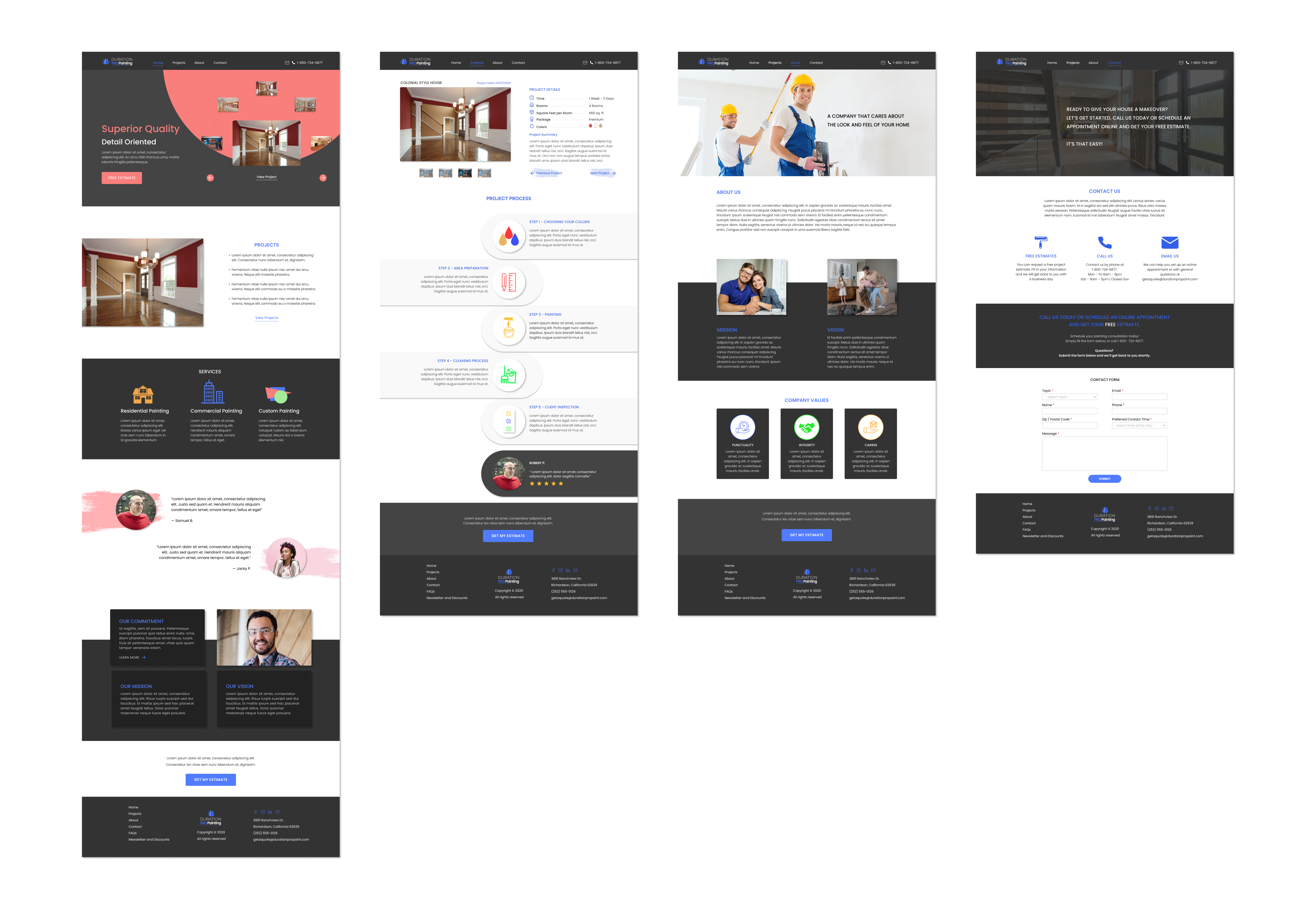 After developing the wireframes from the initial sketches, I was able to design a minimalistic 4-page website. Although simple the core asset of the site was its capability to showcase the contractor's previous work by displaying large HD images and providing a detailed explanation of the painting process. The site core pages were the Home and Project page, both place's main features were large images and a tool that would allow the user to interact with the site.
