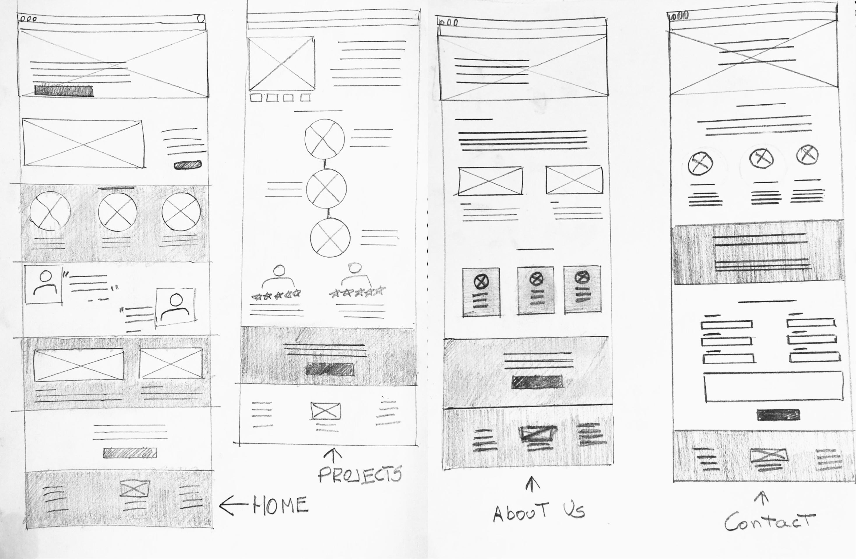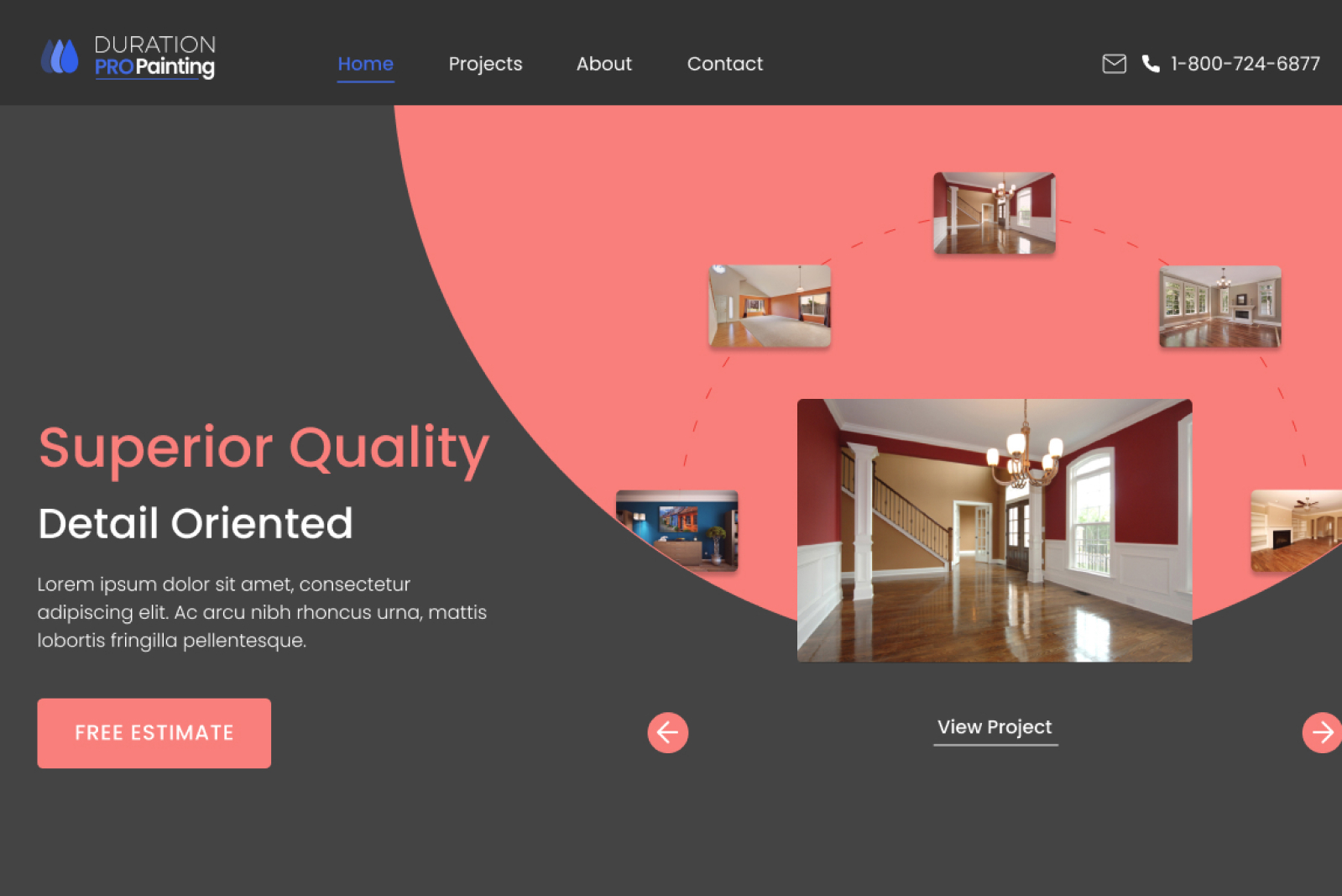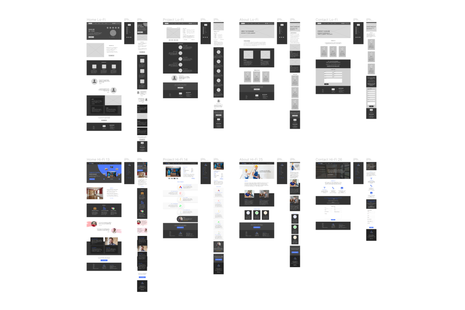 After developing the wireframes from the initial sketches, I was able to design a minimalistic 4-page website. Although simple the core asset of the site was its capability to showcase the contractor's previous work by displaying large HD images and providing a detailed explanation of the painting process. The site core pages were the Home and Project page, both place's main features were large images and a tool that would allow the user to interact with the site.