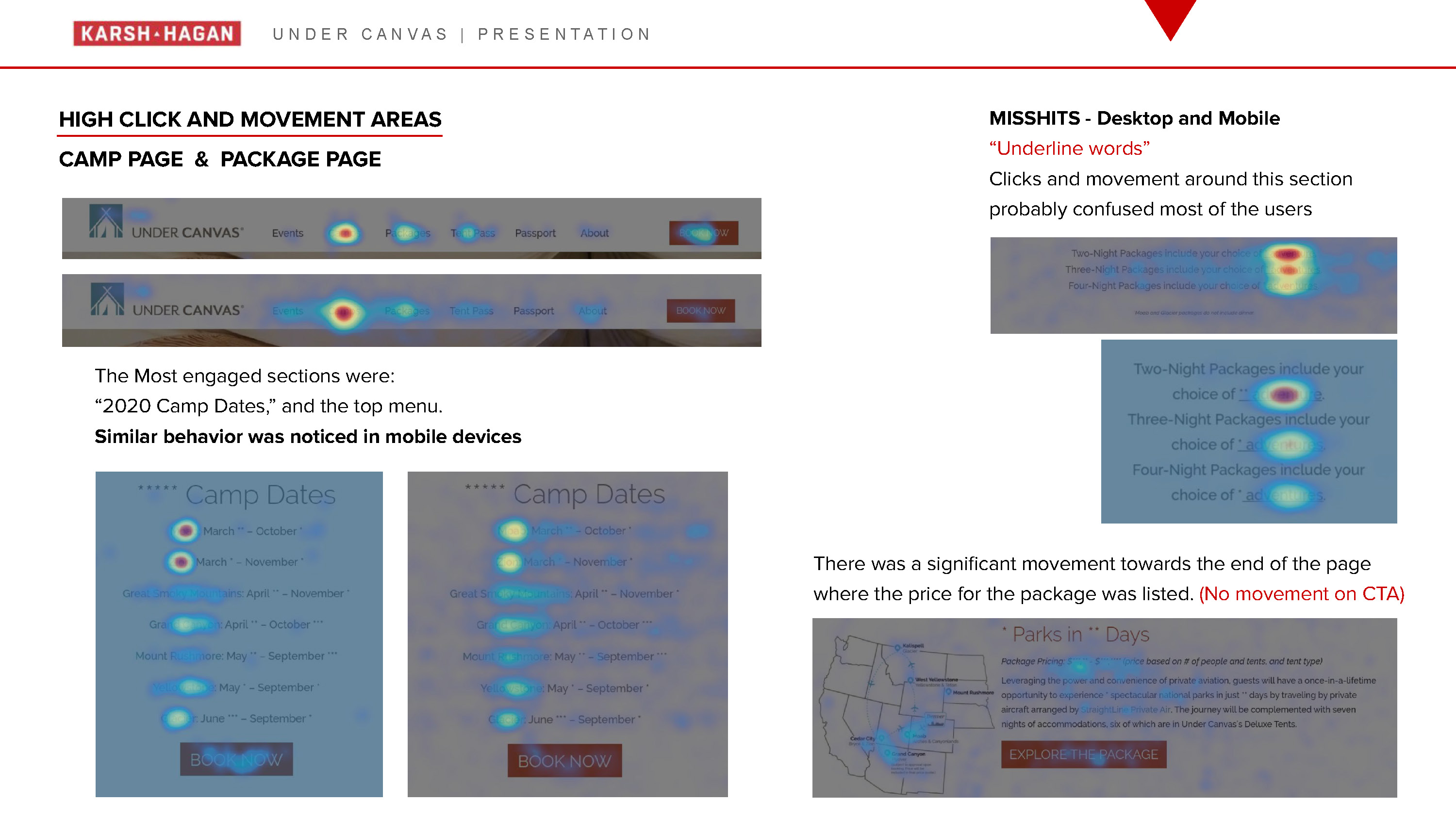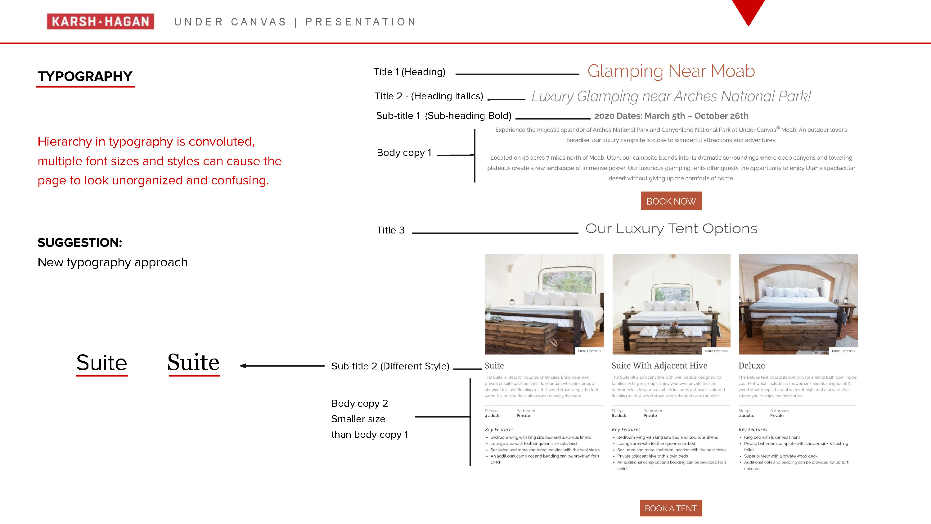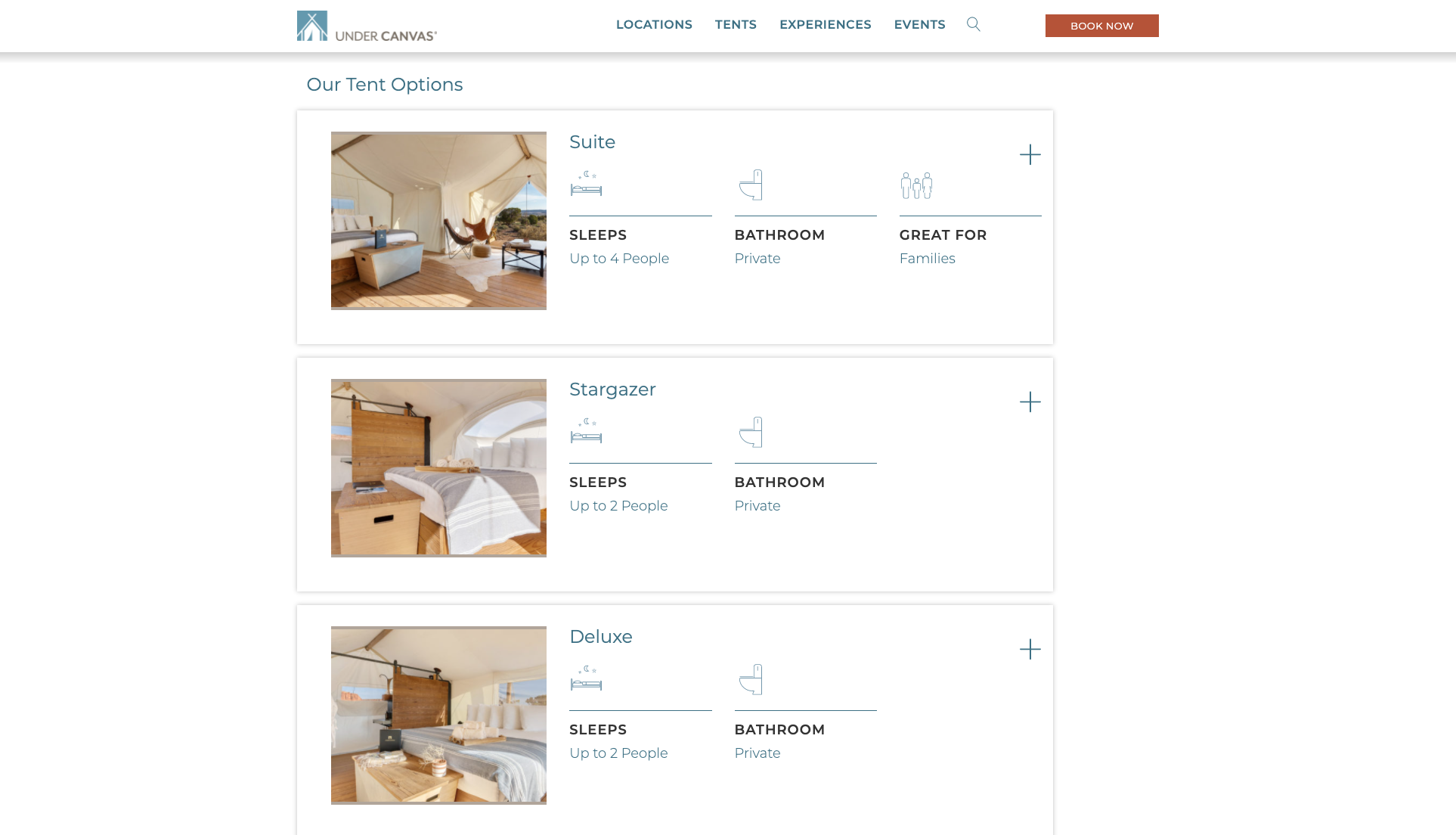 After presenting our findings to the client and suggesting our possible solutions, the client followed through with the most important issues of the site which were typography, diversity, and telling a story of their business. In late 2020 the client "UNDER CANVAS" was recognized amongst the top best resort properties in the world.